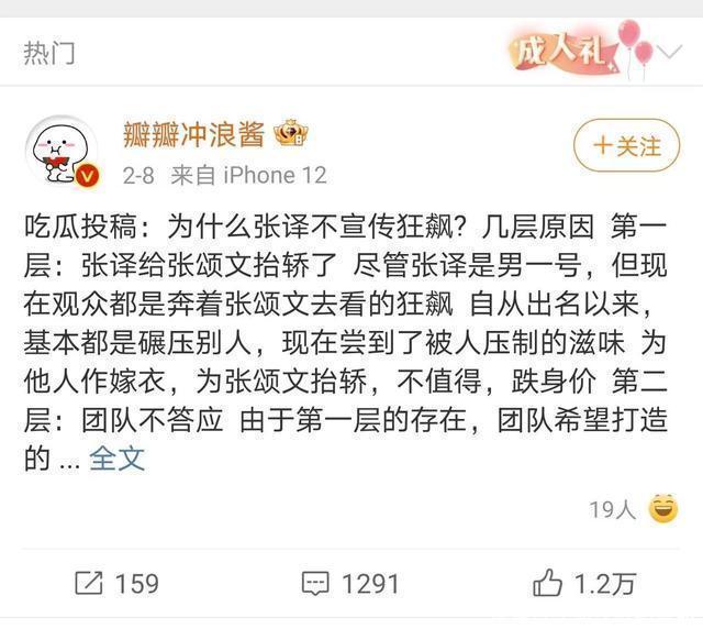 许多东说念主可能认为张颂文是被老本盯上的苦楚蛋。但其实,张译又何尝不是老本的糟跶品呢?他这个男一号当得真实是有些“无能”。我方明明是主演,却在许多方面被男二号的情况盖过风头。在《狂飙》刚热播的时刻,多样对于张译的负面音问就像棋布星陈一样冒了出来。耍大牌、不好相处、孑然剧组等等,这些坏话仿佛是异途同归地对他进行袭击。他还删除了宣传动态,缺席庆功宴,于是“冷眼狼”的标签就像恶魔一样缠上了他。